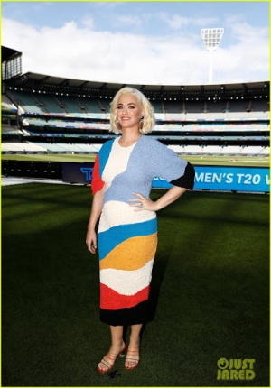Katy Perry anunció hace pocos días que está embarazada de su primer hijo. Y hoy fue su primera aparición formal en público desde el anuncio, en la conferencia de prensa por la Copa Mundial de la Mujer T20 ICC. La cantante lució su panza con un vestido ajustado. Katy se presentará antes y después del partido de criquet de mañana, y esperan que sea el evento deportivo femenino más concurrido ¡de la historia! Mira las fotos: