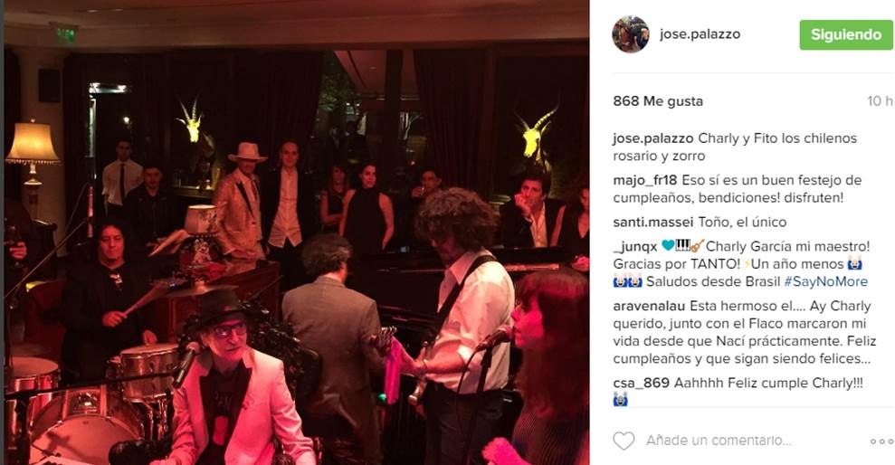 Como no podía ser de otra manera, la música fue la gran protagonista. El ídolo del rock se sentó una vez más frente al teclado, para convertirse en el centro de una gran zapada en el salón. Los invitados disfrutaron de grandes clásicos como "Cerca de la revolución", pero también de las nuevas canciones que Charly incluirá en su próximo disco. Su productor José Palazzo compartió imágenes en las redes sociales. Los grandes del rock nacional dominaron el festejo, que se prolongó hasta pasadas las tres de la madrugada.