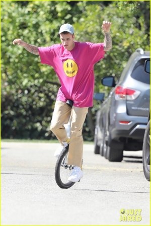 Andar en monociclo no es nuevo para Justin Bieber, pero, aunque tiene práctica, no está libre de caídas... ¡Mirá!